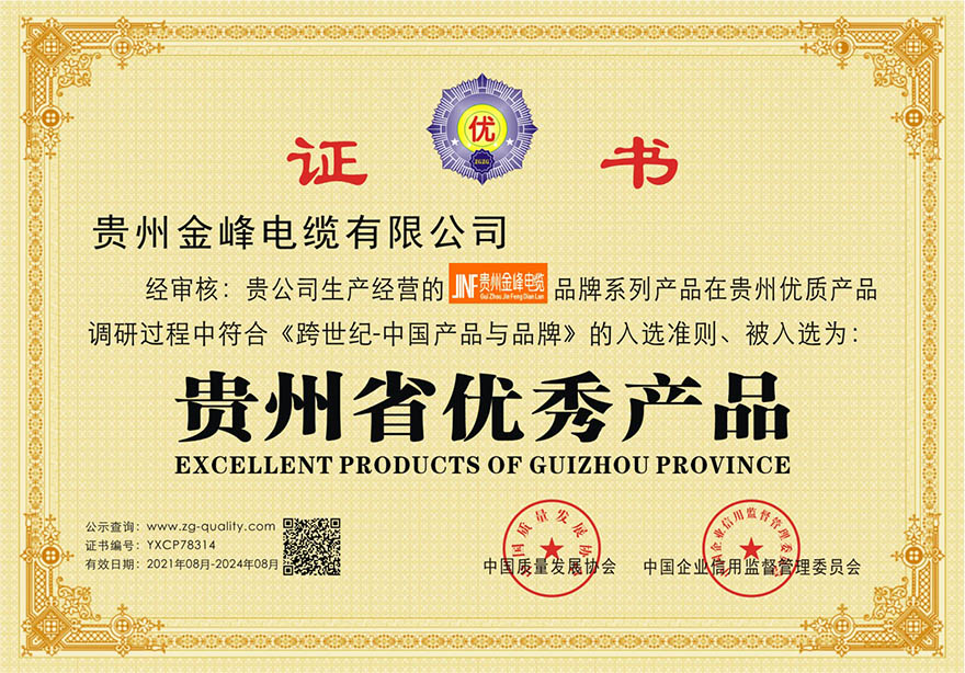 貴州省優秀產品證書
